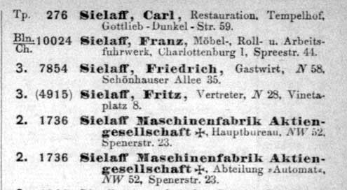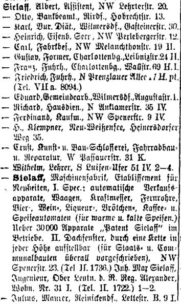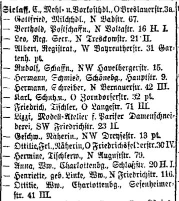 Eintragungen in den verschiedenen Adressbücher:
